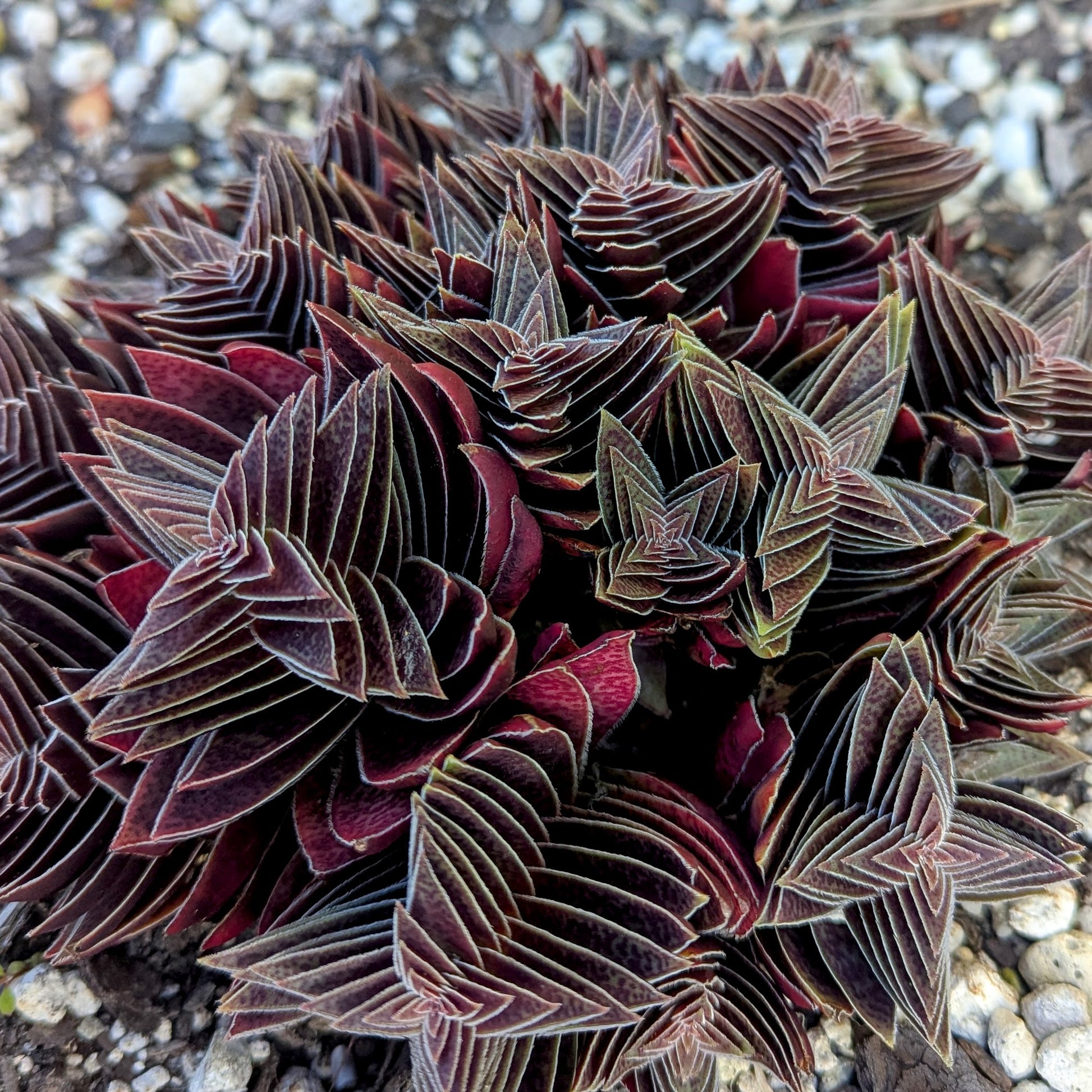 Crassula Capitella Subsp. Thyrsiflora is commonly known as 'Pagoda Village'. As the plant matures you can expect it to reach up to 20 cm (8″) tall. The plants main feature are the green leaves with red edges. When the plant finally produces white flowers form summer and fall.