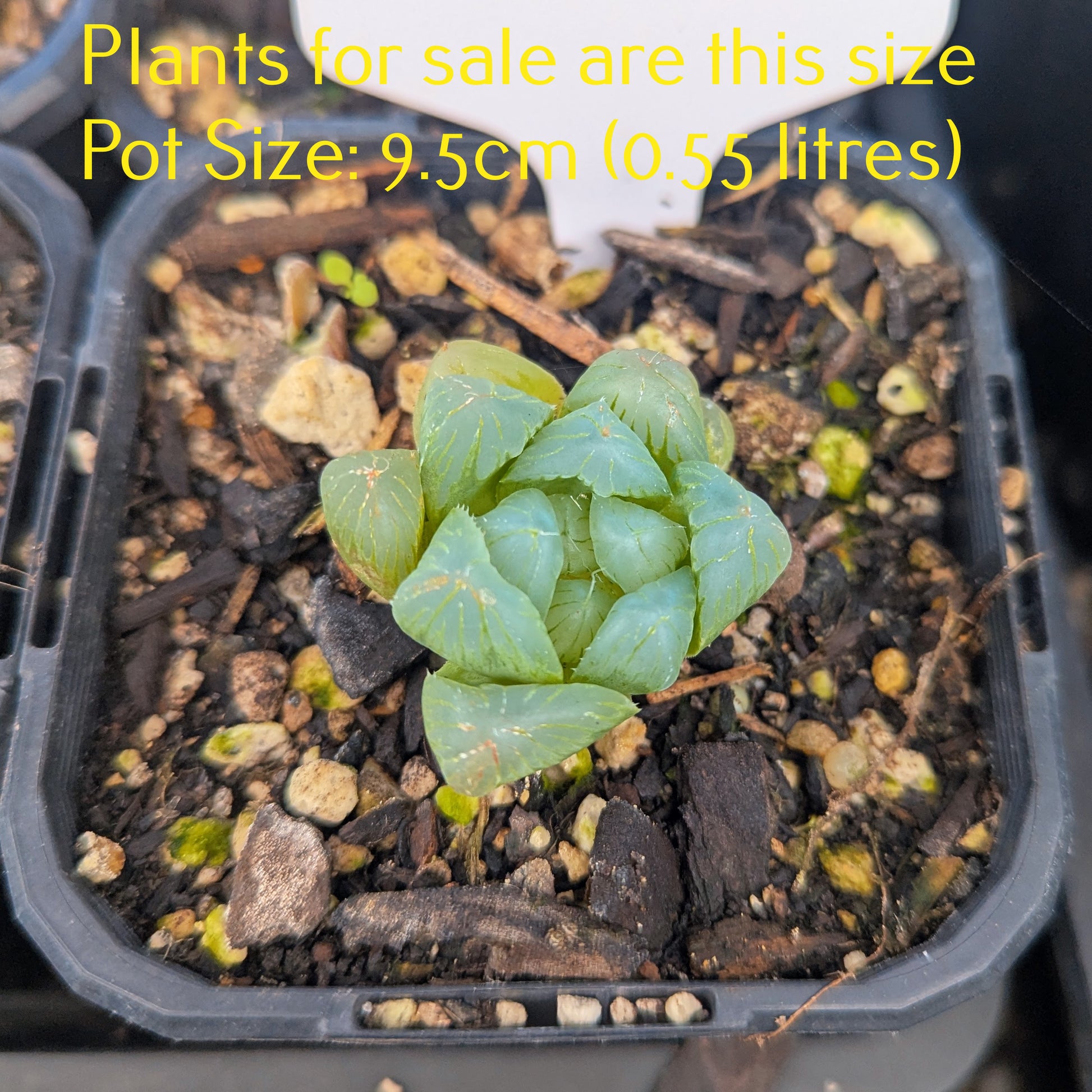 H. cooperi var. pilifera is characteristic by its bluish-green colour, shorter and more stumpy leaves (than var. cooperi), with less pronounced marginal spines, leaf end mostly with bristle. It is slowly offsetting species. Size of the rosette can be from 4 cm - 12 cm. They often grow close to the soil and in dry period they becomes very cryptic, only with leave tips visible above the ground. This variety constitutes the main bod of cooperi species.