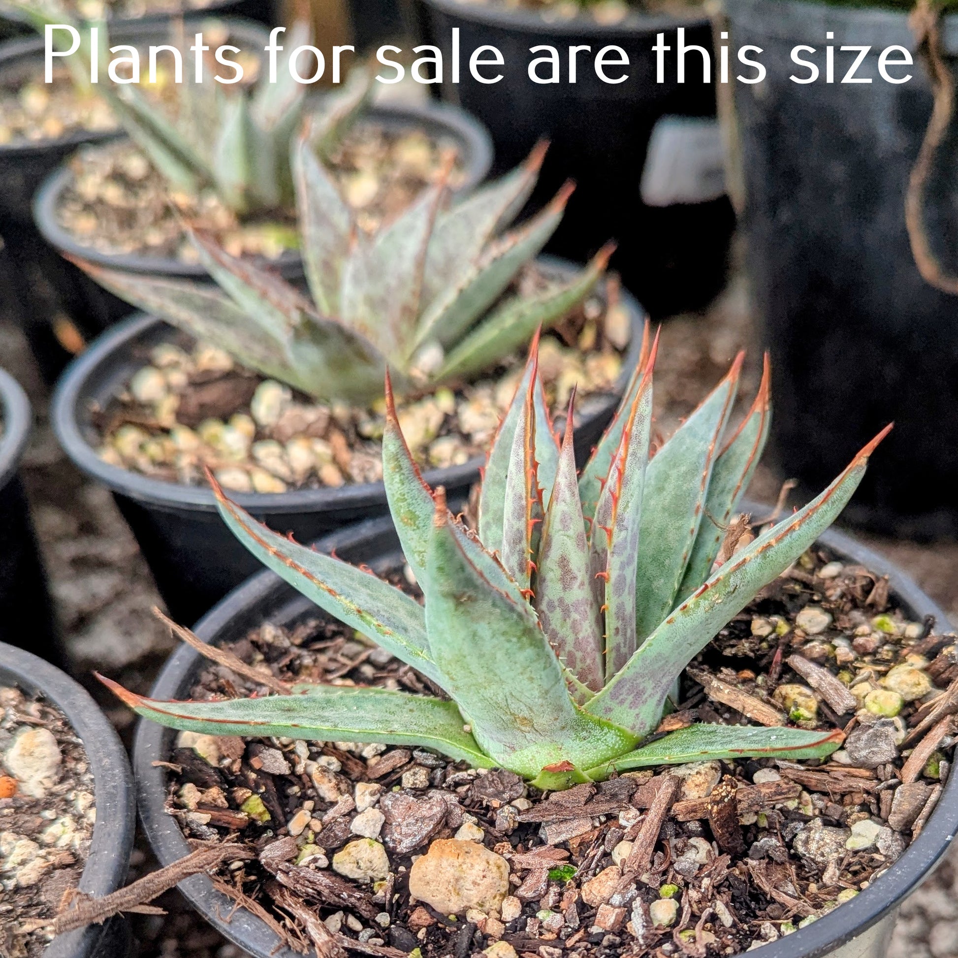 Mangave 'Bloodspot' - A compact succulent that typically forms a non-suckering compact rosette to 30cm tall by 40cm wide with upright 8 inch long by 2.5cm wide grey-green leaves that have a fine-toothed margin edged with maroon and are speckled with spots of the same colour.