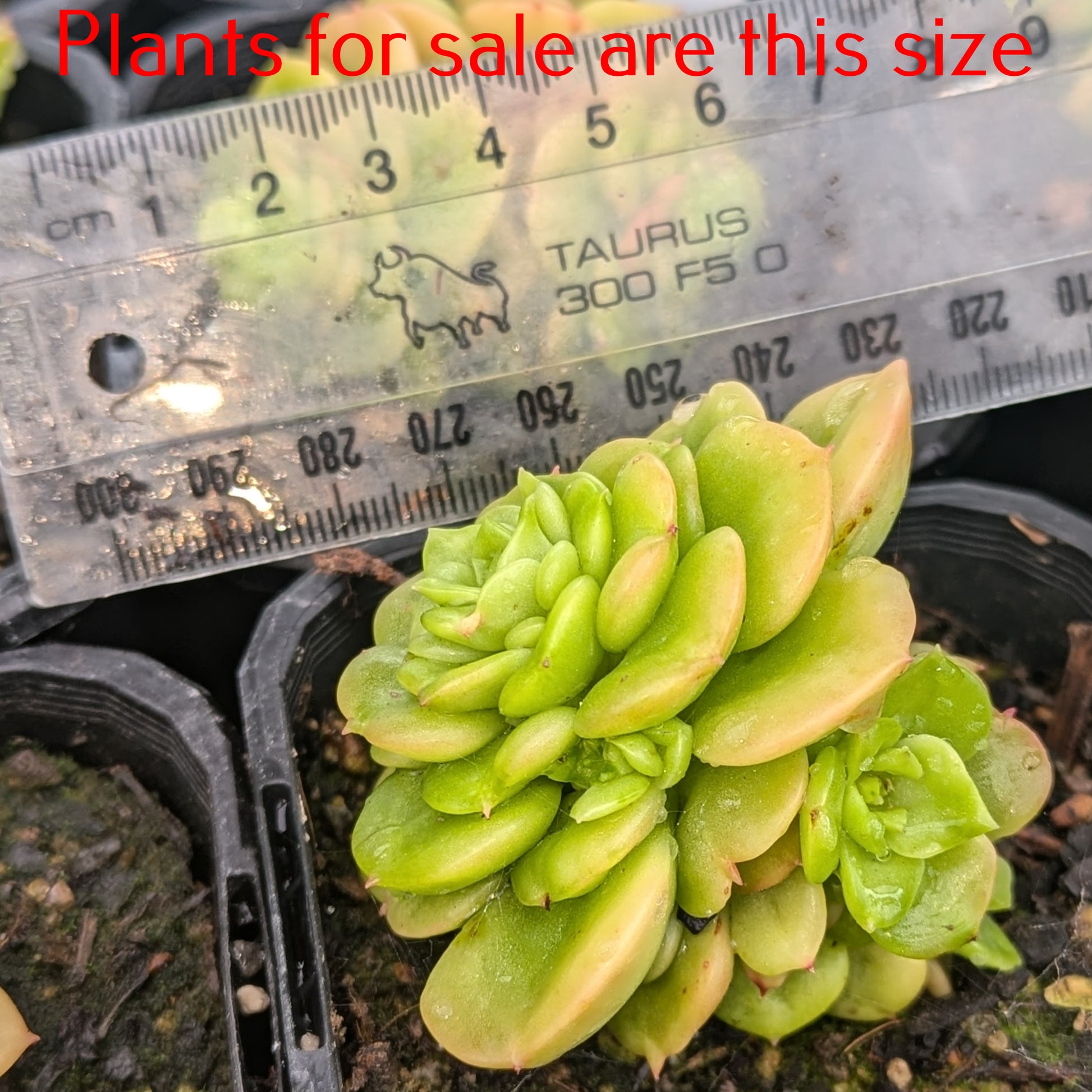 ×Sedeveria 'Rolly' is a beautiful small succulent that forms a compact clump of short-stemmed rosettes. Leaves are fleshy, waxy bright green in summer or when grown in shade or pinkish-yellow in the sun with colder temperatures in winter. Unfortunately, this hybrid does not produce flowers.